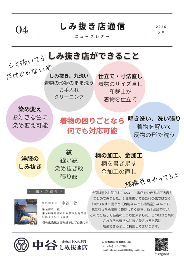 今後とも中谷しみ抜き店をどうぞよろしくお願い申し上げます。